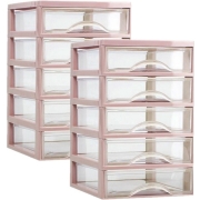 Setje van 2x stuks organizer ladeblokje 4-lades roze/transparant 35 x 27 x 35 cm van plastic. Handig ladeblokje om uw artikelen in op te bergen. Ideaal voor op uw thuis kantoor/slaapkamer om uw…