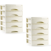 Ladeblokje/bureau organizer - 2x - 5 lades - creme wit - L18 x B21 x H28 cm - plastic -