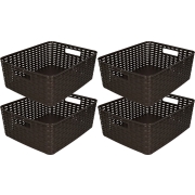 Opbergmand/kastmandje - 4x - 12 liter - bruin - geweven kunststof - 36 x 28 x 13 cm -