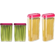 Voedselcontainers set - 4 stuks - roze - 2350ml en 1500ml - kunststof - voorraadpot/strooibus -