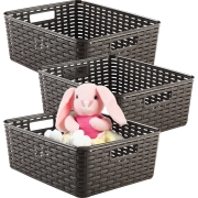 3x opbergmand/kastmand gemaakt van rotan gevlochten kunststof in de kleur choco bruin. Deze manden zijn kast-organisers of zijn prima in de woonkamer, badkamer, keuken of slaapkamer plaatsen. De…