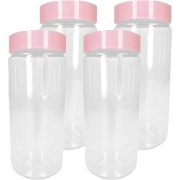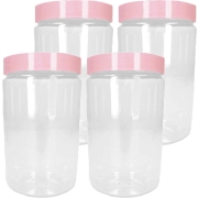 4x voorraadpot/bewaarpot 1L kunststof oud roze B10 x H17 cm. Deze voorraadpot beschikt over een draai deksel en is zeer geschikt om langdurig voedsel in te bewaren zoals snoepgoed, specerijen,…
