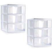 Set van 2x Plasticforte ladeblokje/bureau organizer met 3 lades in de kleuren transparant/wit. Een handig ladeblokje om uw kleine artikelen in op te bergen. Ideaal voor op uw thuis kantoor/…