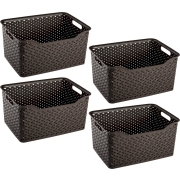 Opbergmand/kastmandje - 4x stuks - 18 liter - donkerbruin - kunststof - 29 x 39 x 19 cm -
