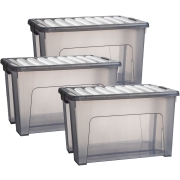 3x opslagbox/kist met zijklem deksel met inhoud van 47 liter. De opslagbox / opbergbox is in de kleur transparant grijs en is gemaakt van stevig kunststof. Afmetingen: 54 x 38 x 32 cm. Handige…