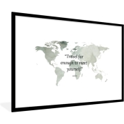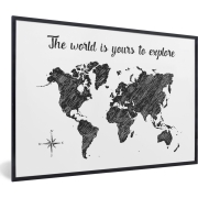 Fotolijst incl. Poster - Wereldkaart - Quote - Zwart - Wit - 120x80 cm - Posterlijst