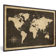 Fotolijst incl. Poster - Wereldkaart - Kompasroos - Vintage - 120x80 cm - Posterlijst