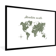 Fotolijst incl. Poster - Wereldkaart - Groen - Quote - 120x80 cm - Posterlijst