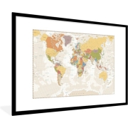 Fotolijst incl. Poster - Wereldkaart - Retro - Kleuren - Educatief - Staatkundig - 90x60 cm - Posterlijst