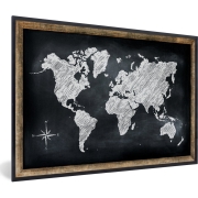 Fotolijst incl. Poster - Wereldkaart - Schoolbord - Krijt - 120x80 cm - Posterlijst