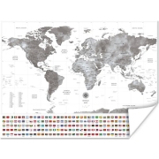 Poster Wereldkaart - Vlag - Zwart - Wit - 160x120 cm XXL