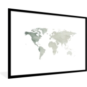 Fotolijst incl. Poster - Wereldkaart - Grijs - Wit - 120x80 cm - Posterlijst