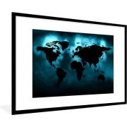 Fotolijst incl. Poster - Wereldkaart - Zwart - Blauw - 120x80 cm - Posterlijst