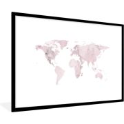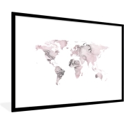 Fotolijst incl. Poster - Wereldkaart - Marmer - Roze - 90x60 cm - Posterlijst