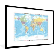 Fotolijst incl. Poster - Wereldkaart - Vlag - Politiek - 90x60 cm - Posterlijst