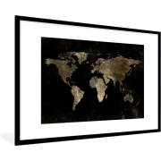 Fotolijst incl. Poster - Wereldkaart - Zwart - Goud - 90x60 cm - Posterlijst