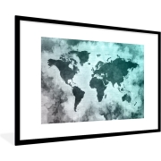 Lijst - Poster - Wereldkaart - Grijs - Blauw - FotolijstDeze mooie poster past goed in de woon- of slaapkamer! Productkenmerken De poster is van hoge…