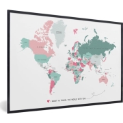 Fotolijst incl. Poster - Wereldkaart - Waterverf - Roze - 120x80 cm - Posterlijst