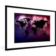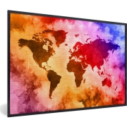 Fotolijst incl. Poster - Wereldkaart - Kleur - Abstract - 90x60 cm - Posterlijst