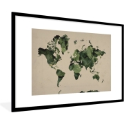 Fotolijst incl. Poster - Wereldkaart - Bladeren - Groen - 120x80 cm - Posterlijst