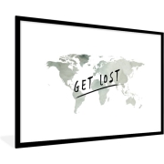 Fotolijst incl. Poster - Wereldkaart - Quote - Grijs - 90x60 cm - Posterlijst