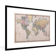 Fotolijst incl. Poster - Wereldkaart - Vintage - Wereld - Kinderen - Jongens - Meisjes - 120x80 cm - Posterlijst