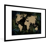 Fotolijst incl. Poster - Wereldkaart - Zwart - Bladeren - 120x80 cm - Posterlijst