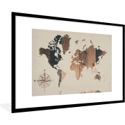 Fotolijst incl. Poster - Wereldkaart - Bruin - zwart - 90x60 cm - Posterlijst