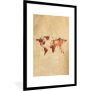 Fotolijst incl. Poster - Wereldkaart - Bruin - Verf - 120x80 cm - Posterlijst