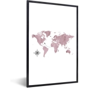 Fotolijst incl. Poster - Wereldkaart - Roze - Paars - 90x60 cm - Posterlijst