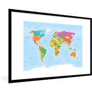 Fotolijst incl. Poster - Franse Wereldkaart - Kleuren - Simpel - 120x80 cm - Posterlijst