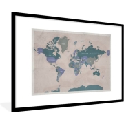 Fotolijst incl. Poster - Wereldkaart - Vintage - Abstract - Kinderen - Jongens - Meisjes - 120x80 cm - Posterlijst