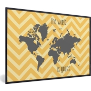 Fotolijst incl. Poster - Wereldkaart - Grijs - Patroon - 90x60 cm - Posterlijst