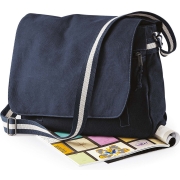 Canvas schoudertas in de kleur donkerblauw van 14 liter. Vintage schoudertas met klittenbandsluiting en een verstelbare schouderband gemaakt van gewassen canvas, voorzien van bronskleurige klemmen…