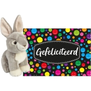 Cadeau setje om op te sturen. Pluche knuffel Konijn van 18 cm met een Gefeliciteerd wenskaart. Pluche knuffeldier. Gekleurde verjaardagskaart. Deze vrolijke verjaardag wenskaart is bedrukt met…