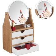 Relaxdays make up organizer met spiegel - 3 lades - sieraden opbergen - make up spiegel