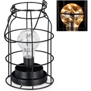 Relaxdays tafellamp op batterijen - industrieel - led lamp - vintage - nachtlamp - zwart