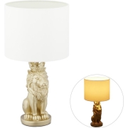 Relaxdays tafellamp leeuw - nachtlamp wit - lamp E27 fitting - bedlamp - design - goud