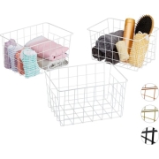 Relaxdays metalen draadmand - 3 stuks - opbergmand metaal - kastmand - badkamer- mandje - wit