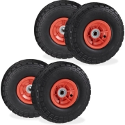 Relaxdays 4x steekwagenwiel - anti-lek - 4.1/3.5-4 - rubber - reservewiel - zwart/rood