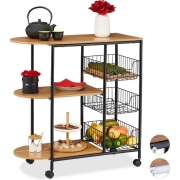 Relaxdays keukentrolley industrieel - serveerwagen vintage - keukenrek verrijdbaar metaal - C