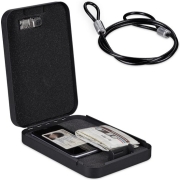Relaxdays draagbare geldkluis - met cijferslot - mini kluis - vakantie - staal - zwart