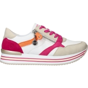 REMONTE artikel/model D0J01-85 jeans/weiss/bleu/rose zijn wit + blauw tinten en oud-roze damesschoenen hippe plateauzool sneakers, gympen of baskets van de Duitse schoenenfabrikant Remonte. Deze hip…