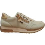 Remonte dames sneaker. Deze lichtgewicht sneaker is ideaal voor dagelijks gebruikt. Tijdloos en makkelijk te combineren. Uitgevoerd in textiel en imitatieleer met glanzende afwerking. De rits op de…