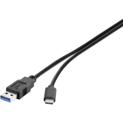 Renkforce USB-kabel USB 3.2 Gen1 (USB 3.0 / USB 3.1 Gen1) USB-A stekker, USB-C stekker 0.30 m Zwart Vergulde steekconta