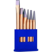 Beitel van chroom-vanadium staal, goudkleurig gelakt met blanke snijkant. Met rubberen handbeschermer.…