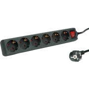 ROLINE 6-voudige stekkerdoos met schakelaar, zwart, 1,5 m