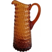 Handgemaakte glazen waterkaraf met 'hobnail' structuur ook genoemd ananas jug, spijkerglas schenkan of egeltjes karaf.Heel mooi te gebruiken ook als vaas. <br />