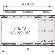 MultipacPro 19 inschuifeenheid, gemaakt van aluminium, met gesloten boven- en onderplaten, 3 HE, 280 mm MULTIPAC PRO 3U 280D AFDEKPLAAT P Complete plug-in unit van aluminium - Achterpaneel…