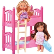 Klaar voor een leuk pyjamafeestje. Wanneer de twee Evis in hun nachthemd gaan slapen, gaan ze in het stapelbed liggen en nestelen zich onder de warme dekens. Het stapelbed kan ook eenvoudig worden…